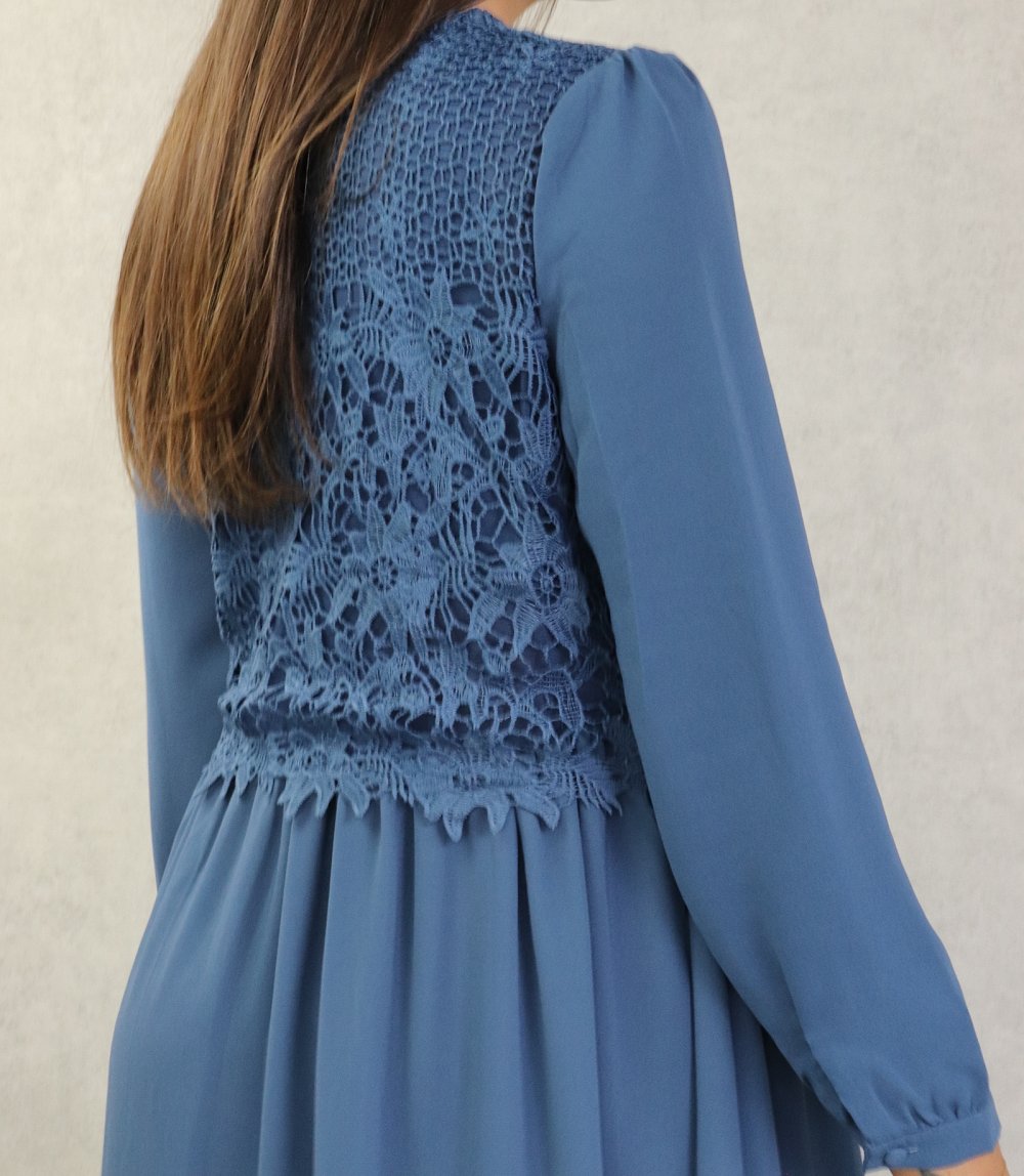 Robe longue à dentelles doublée pour femme - Couleur bleu acier Vetement & Accessoire