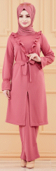 Ensemble classique deux pièces tunique et pantalon (Tenue mastoura pour femme musulmane) - Couleur rose - REF. 36025 (38.00 €)