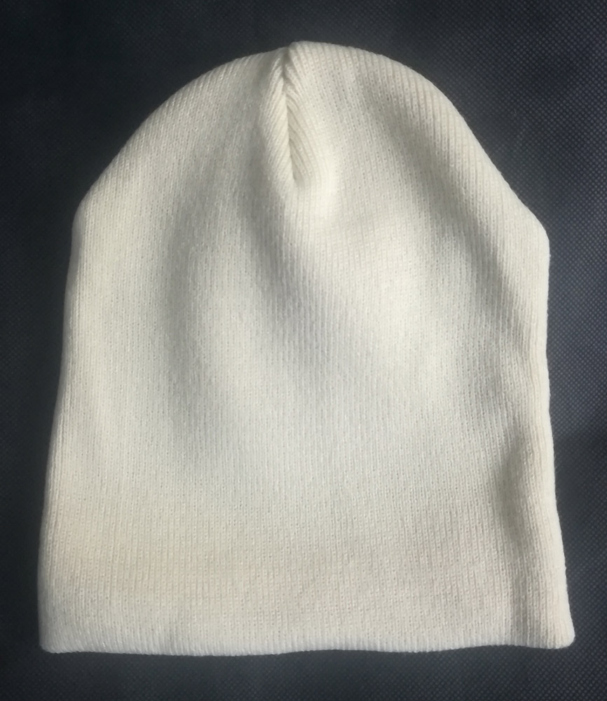 Bonnet d'hiver blanc. Taille unique avec possibilité d'adapter sa longueur grâce à sa partie rabattable.