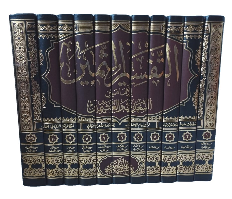 تفسير يجمع أقوال الشيخين العثيمين والسعدي رحمهم الله في تفسير آيات الله من دروسه الصوتية و من كتبه ملحوظة: لم يكمل الشيخ العثيمين تفسيره, فلمواضيع القرآن الكريم التي لم بتعرض لها الشيخ بالتفسير و البيان أكملت تفسيرها من تفسير شيخه و معلمه الشيخ عبد الرحمن السعدي رحمه الله حتى يكون لدى القارئ كتاب تفسير كامل هذه الطبعة تتميز بأمور منها معه كتاب “دفع إيهام الاضطراب” للعلامة المفسر محمد الأمين الشنقيطي تعليقات مفيدة للشيخ العلامة عبد العزيز بن بازأحكام الشيخ الألباني على الأحاديث صحةً ة ضعفاً طبعة مصححة صححت الأخطاء الواقعة في الطبعات السابقة