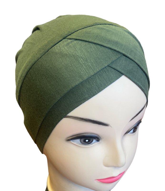 Turban bonnet croisé bicolore femme moderne - Couleur Vert émeraude et Noir - REF. 39993 (3.90 €)