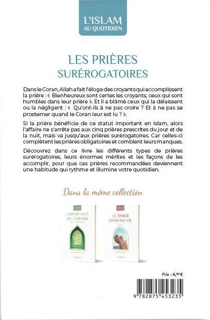 De nombreux ouvrages traitent de la prière obligatoire et de la manière de l'accomplir. Cependant, rares sont les ouvrages exclusivement consacrés aux prières surérogatoires. Voilà qui est fait !!! Ce livre présente et explique toutes ces prières "supplémentaires" : leur importance, leur moment, la façon de les accomplir, leurs récompenses, etc...