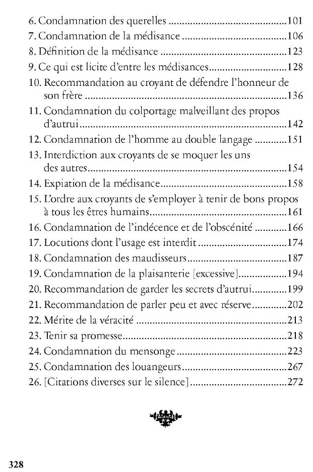 Il n'est donc pas anodin que ce soit le premier hadith que rapporte l'imam Ibn Abî al-Dunyâ dans son Livre du silence. Le lecteur trouvera, dans ce classique du patrimoine islamique, 760 récits du Prophète (paix et salut sur lui), d'autres prophètes, mais aussi de pieux prédécesseurs, autour des thématiques du silence et de l'éthique de la parole en islam.