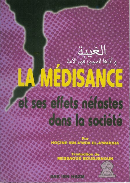 Les textes interdisant la médisance- Qu'est-ce que la médisance?- Comment les gens se laissent-ils entraîner dans celle ci ?- Les causes qui l'encouragent et leur remède - Réflexion sur les hadiths qui stigmatisent la médisance- L'interdiction d'écouter le médisant- Les avantages à tirer de ces textes- Celui qui écoute la médisance et celui qui médit sont égaux- Les textes qui stigmatisent la médisance et qui ordonnent de défendre le musulman en son absence- L'odeur de ceux qui médisent des croyants- Le médisant est quelqu'un qui manque de foi- La médisance entrave la mission du commandement du convenable et de l'interdiction du répréhensible- Ce qui est permis dans la médisance- Ce qu'il faut prendre en considération dans les cas où la médisance est permise - Le repentir d'une médisance- Des actes qui ne sont pas considérés comme relevant de la médisance, mais qui sont similaires- Les inconvénients découlant de la complaisance dans la médisance du pécheur- Garde-toi de la médisance du maladroit- Des actes plus graves que la médisance- Une médisance sans recours à la langue- La lutte (jihad) contre la médisance est l'une des meilleures formes de lutte- Les propos condamnant la médisance