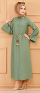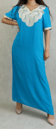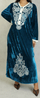 Robe Kawtar orange avec broderie rouge. Tissu avec motifs brillants.