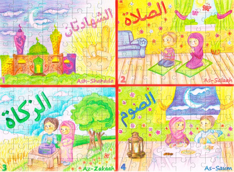 Chaque puzzle traite d'un pilier parmi les cinq piliers de l'islam.