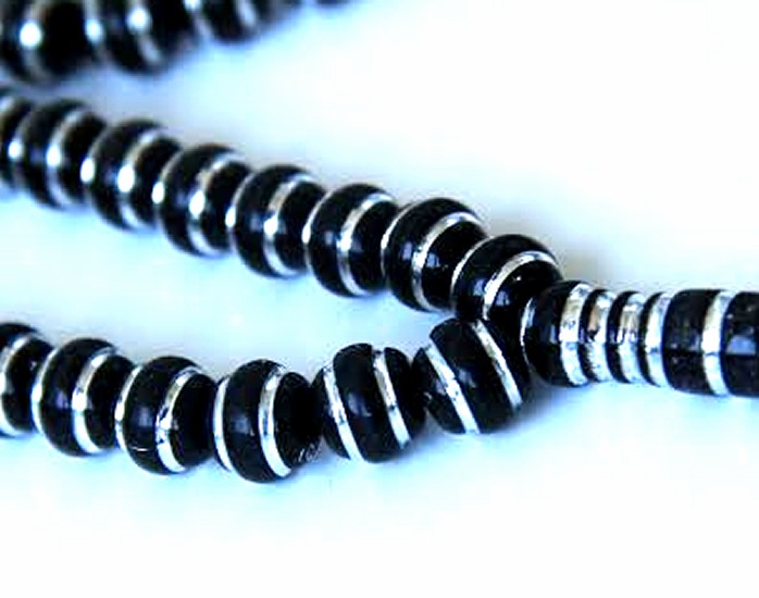 Sabha (Chapelet) 99 perles en verre de couleur Gris foncé et motifs noirs - REF. 25956 (3.50 €) - En Promotion à 2.00 €