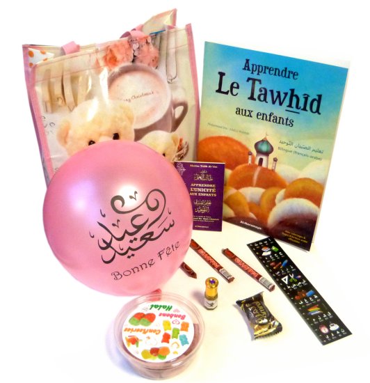 Pack Cadeau Fillette musulmane (3-5 ans) : Nounours - Livres - Bonbons Halal - Musc - Tapis de prière... - REF. 3016025,00 €
