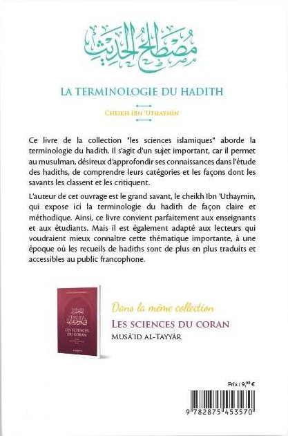 L'auteur de cet ouvrage est le grand savant le cheikh al-'Uthaymin, il expose ici la terminologie du hadith de façon claire et méthodique. Ainsi, ce livre convient parfaitement pour les enseignants et les étudiants. Mais il est également totalement adapté aux lecteurs qui voudraient mieux connaître cette thématique importante, à une époque où les recueils de hadith sont de plus traduits et accessibles au public francophone.