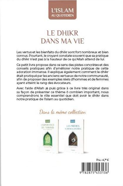 Ce petit livre propose des pistes concrètes et des conseils afin d’améliorer notre pratique de cette immense adoration. Il explique comment le dhikr était pratiqué par les anciens vertueux de notre communauté et propose des exemples réels d’hommes et de femmes ayant atteint le rang des évocateurs.