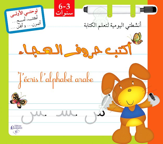 Livre effaçable avec son feutre pour apprendre à écrire l'alphabet arabe.