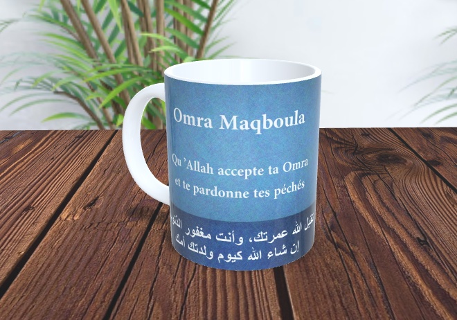 Mug contenant des invocations (du'a) en arabe et français pour ceux qui reviennent de la Oumra... Il n'y a pas une invocation précise à dire dans la sunna mais il est toujours recommandé de faire des invocations...