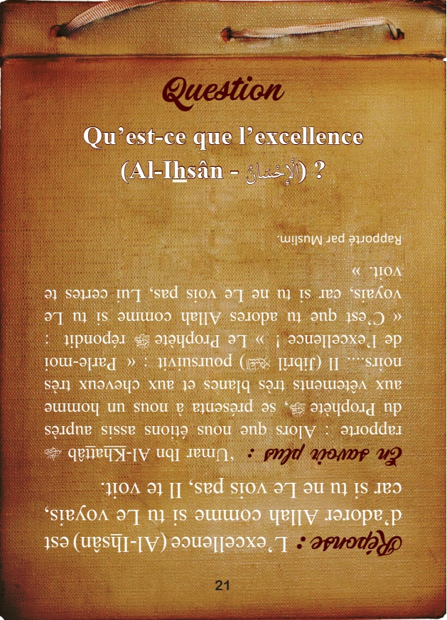 Les informations relatives au jeu : Les 101 questions contenues dans ce jeu et relatives à la Croyance et au Dogme sont tirées essentiellement des ouvrages des grands savants reconnus (anciens et contemporains). La partie « En savoir plus » vous fournit plus de détails ainsi que les preuves puisées dans le Coran et la Sunna.