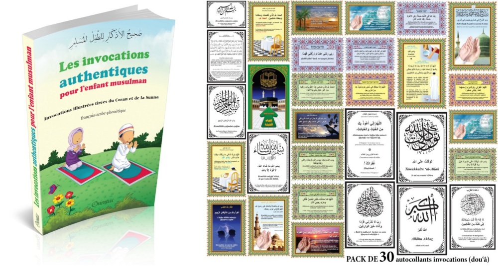 (2) Le livre "Les invocations authentiques pour l’enfant musulman صحيح الأذكار للطفل المسلم" contient des Invocations illustrées tirées du Coran et de la Sunna - français-arabe-phonétique. Extraits du livre «La Citadelle du Musulman» de Cheikh Sa'îd Ibn 'Alî Ibn Wahf Al-Qahtânî.