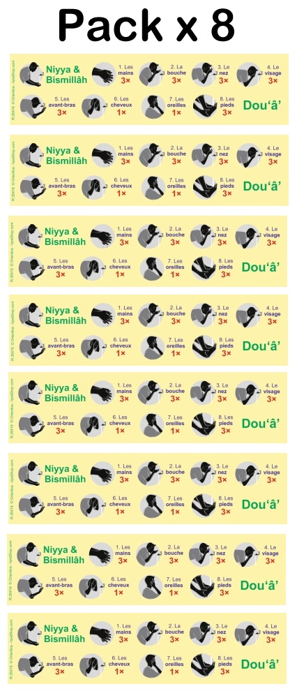 Pack de 8 Stickers Autocollants pour les ablutions (woudou) à coller dans la salle de bain pour aider à faire le wudu (Fond blanc) - REF. 35685 (4.00 €)