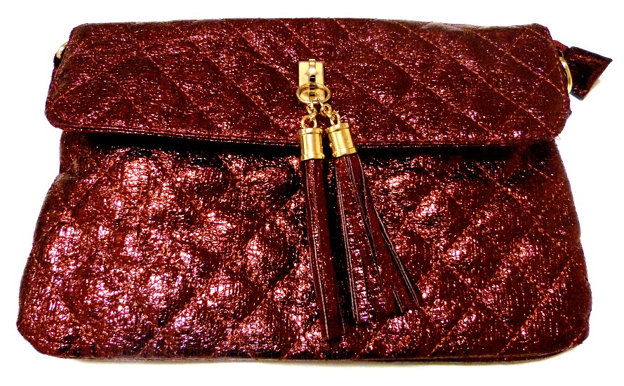 Pochette de Soirée : Sac à main brillant de couleur bordeaux Vetement & Accessoire