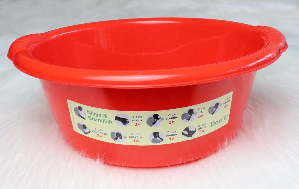Récipient pédagogique pour faire l'ablution (woudou) avec illustration des différentes étapes - Couleur Rouge - REF. 35480 (3.90 €)