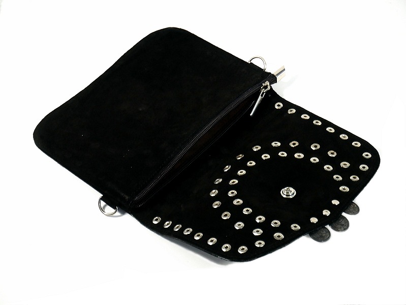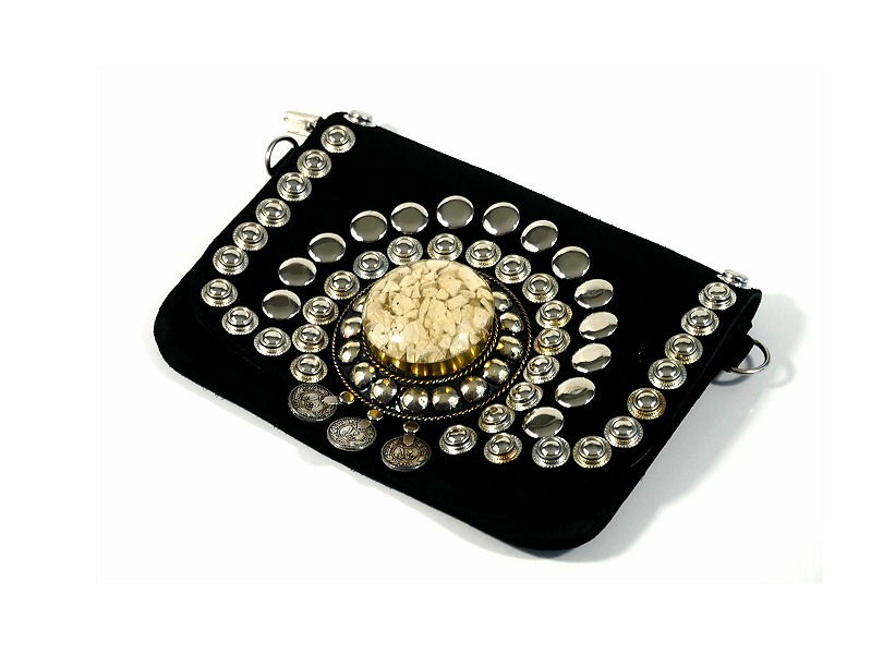 Sac à main cuir daim noir Ornement de pierres coulées dans un bloc de résine Vetement & Accessoire