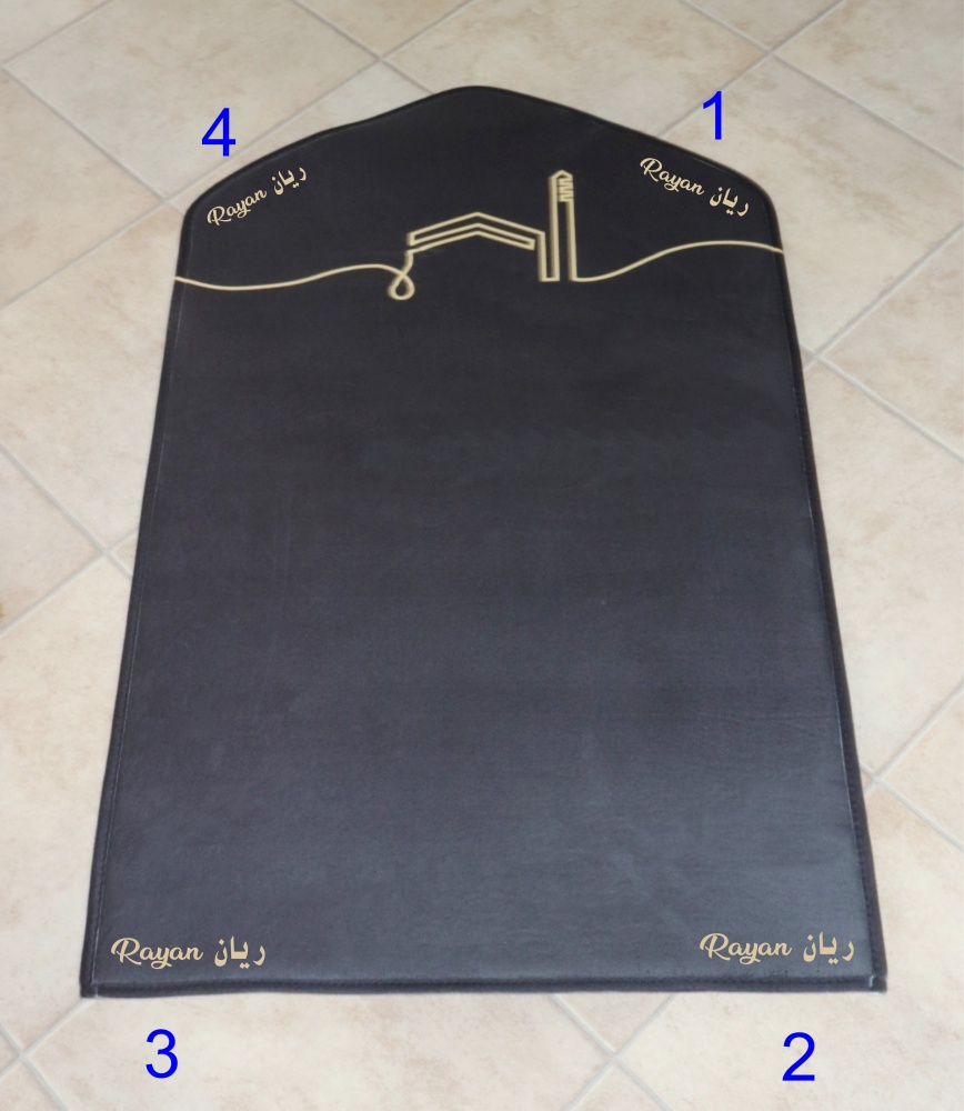 Grand Tapis de prière adulte couleur noir doré en velours brillant personnalisé avec le prénom de votre choix - REF. 39034 (23.00 €) - En Promotion à 19.00 €