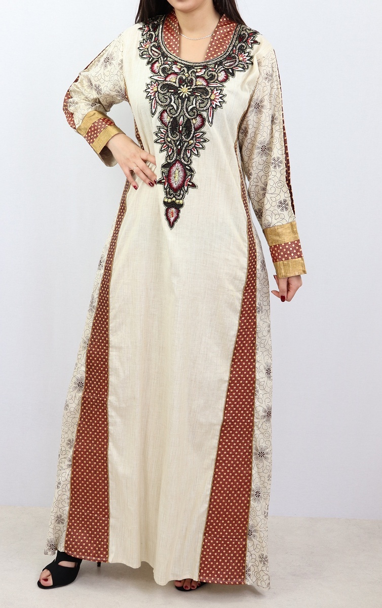 Robe orientale longue pour femme avec perles et broderies 100% coton (Plusieurs couleurs disponibles) - REF. 33442 (25.00 €)