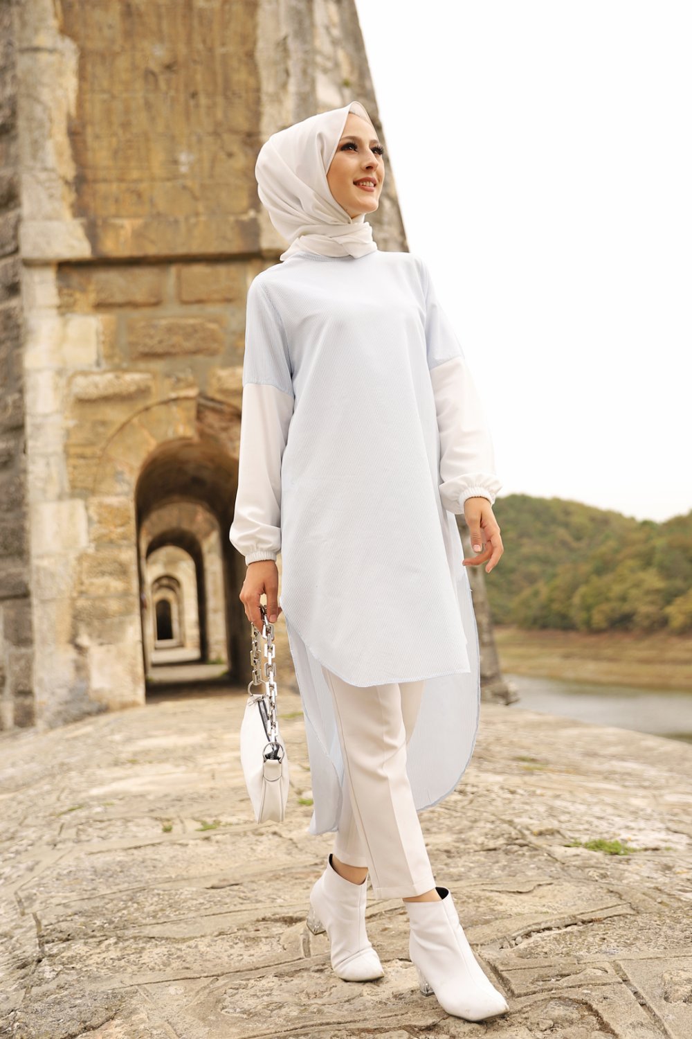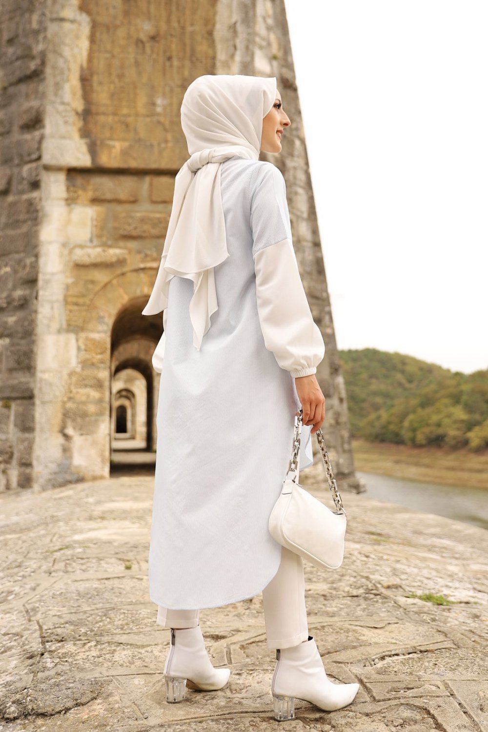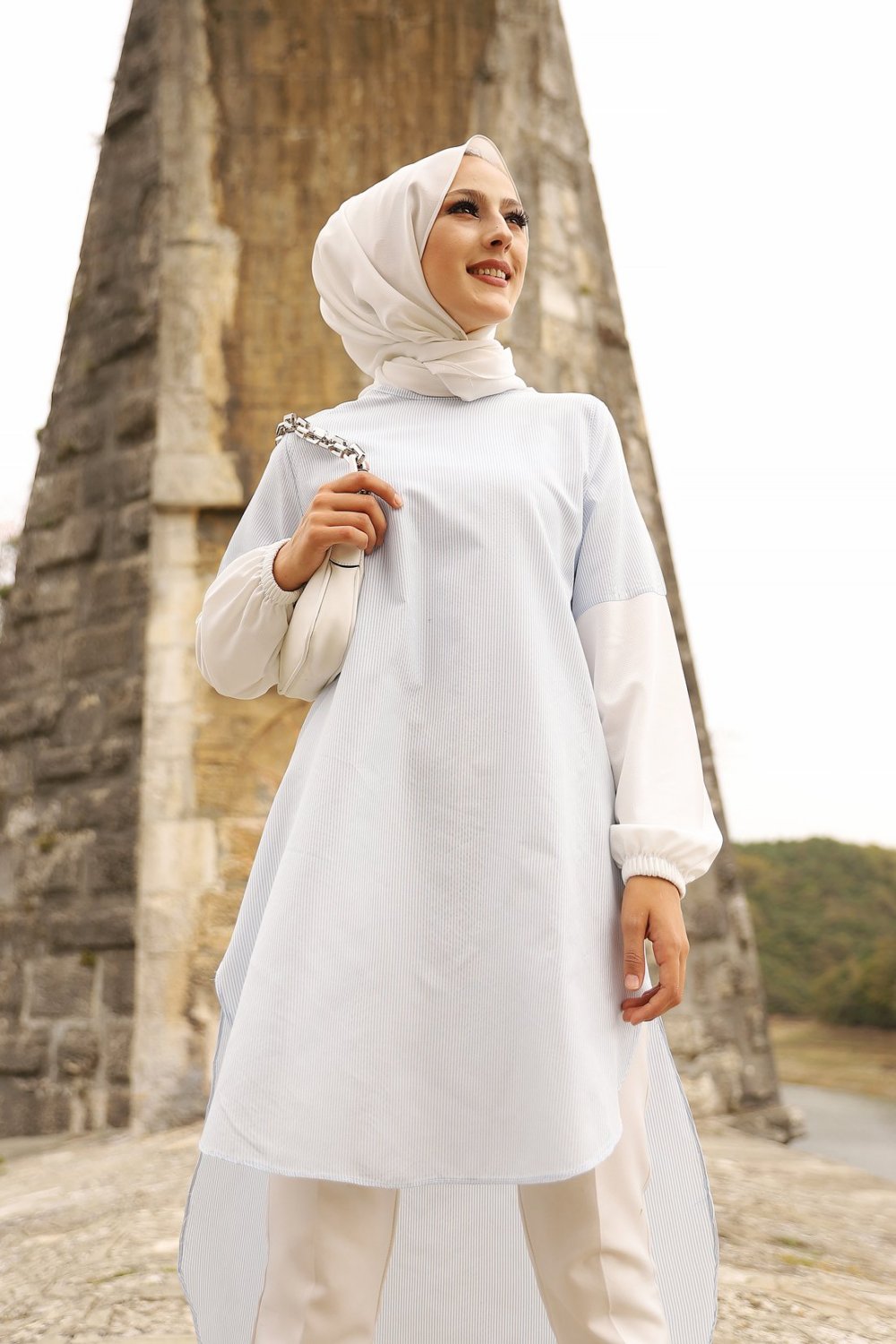 Tunique à rayures pour femme (Vêtement Hijab) - Couleur bleu clair Vetement & Accessoire