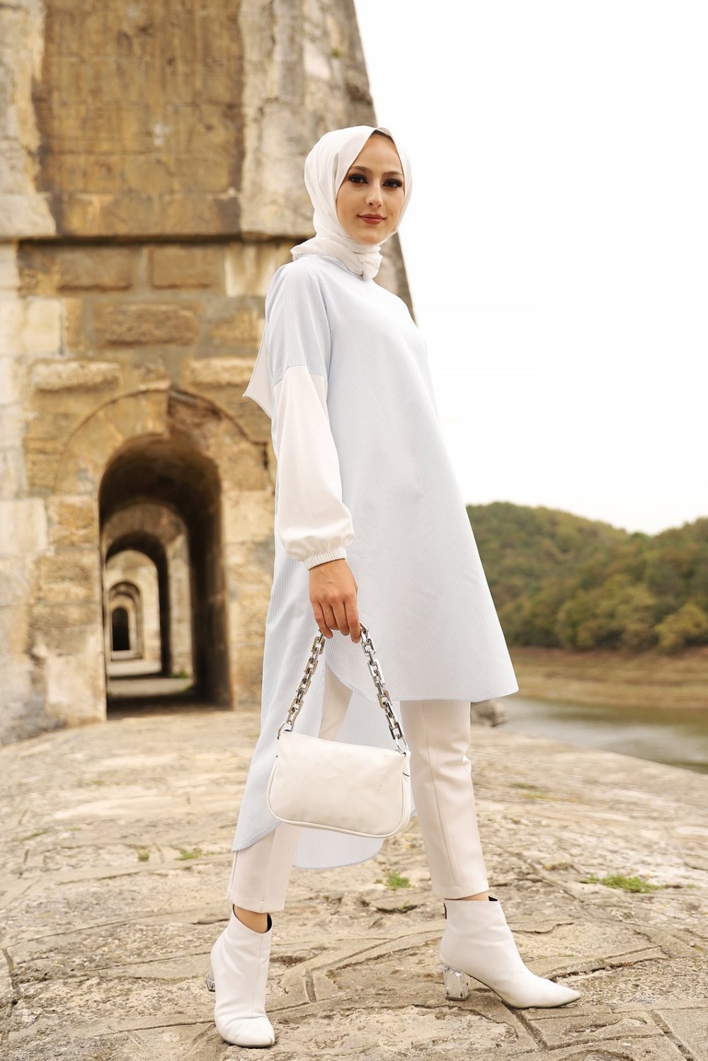 Tunique a rayures pour femme (Vetement Hijab) - Couleur bleu clair