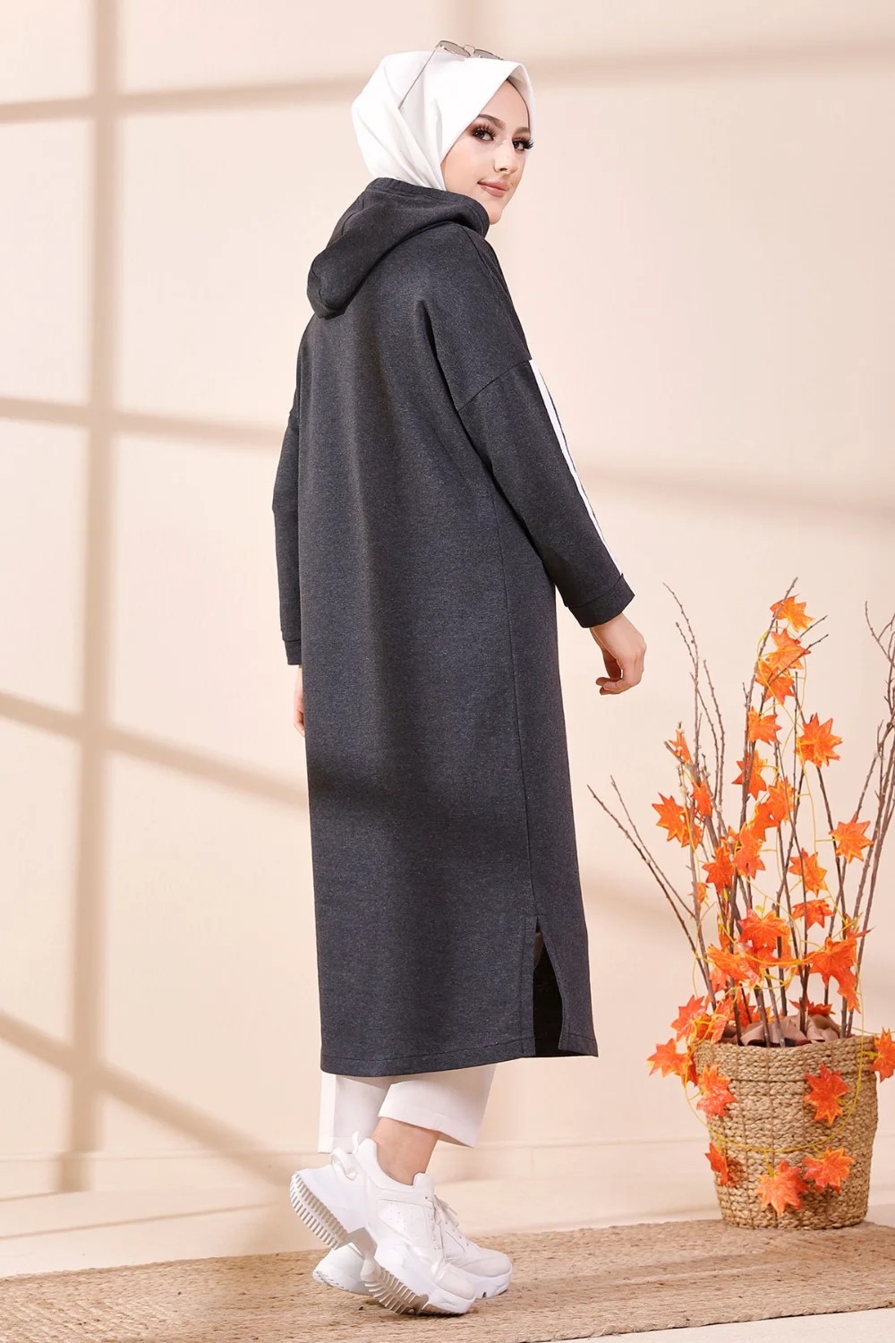 Tunique décontractée avec capuche (Vetement moderne femme voilée) - Couleur anthracite Vetement & Accessoire