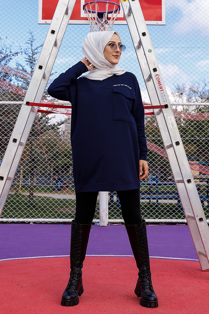 Tunique décontractée avec grande poche (Sweat femme Hijab) - Couleur bleu nuit Vetement & Accessoire