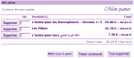 Vous disposez de votre propre panier que vous remplissez avec les produits que vous désirez acheter. Vous pouvez à tout moment gérer le contenu de votre panier en cliquant sur le lien "Panier". Une fois vos produits choisis, pour régler votre commande il suffit de cliquer sur le lien du haut "Régler ma commande" ou bien, si vous êtes sur la page du panier, sur le bouton "Passer commande".