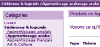 Voir les produits : Permet également de ne voir que les produits de la langue courante (celle de l'interface, ici, le français) ou de voir également les produits en langue arabe.