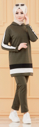 Ensemble survêtement pour femme : Tunique à capuche et Pantalon (Vêtement de sport Hijab) - Couleur kaki - REF. 36229 (32.00 €)