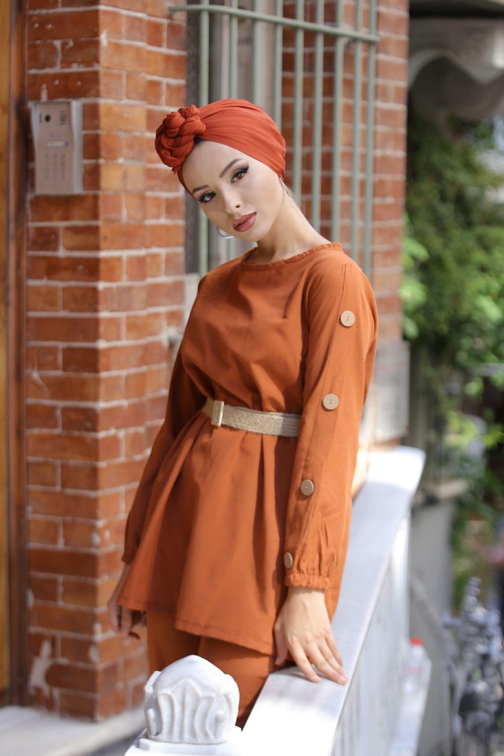 Ensemble Tunique et Pantalon avec Ceinture - Couleur rouille (Vetements modernes - Marque Amelis Paris)