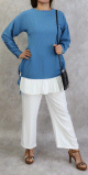 Ensemble deux pièces bicolore tunique et pantalon couleur Bleu acier et Blanc - REF. 31743 (38.00 €)