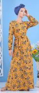 Robe décontractée maxi-longue imprimée floral pour femme - Couleur jaune moutarde et motif fleur bleu - REF. 32556 (29.00 €)