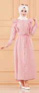 Robe longue fluide entièrement boutonnée devant (Vêtement Hijab Turque Outfit) - Couleur Rose - REF. 33949 (35.00 €)