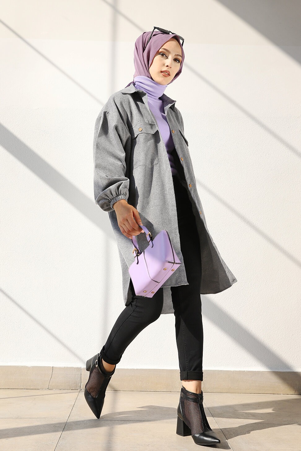 Chemise-Tunique ample pour femme (Vêtement Hidjab) - Couleur gris foncé Vetement & Accessoire