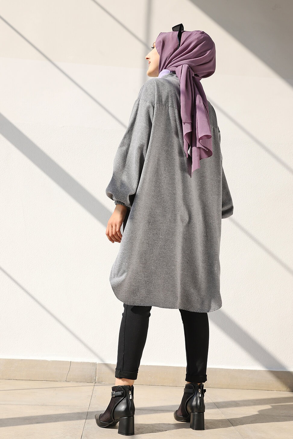 Chemise mi-longue fluide ample légèrement brillante (Chemises femme hijab) - Couleur Gris clair - REF. 34607 (26.90 €)