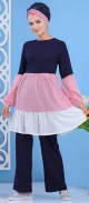 Ensemble femme 2 pièces (tunique et pantalon) de couleur bleu marine, rose et blanc - REF. 30525 (32.00 €) - En Promotion à 22.00 €