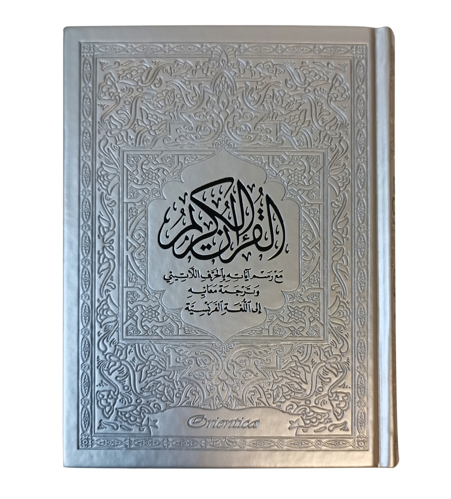 Le Saint Coran - Transcription phonétique et Traduction des sens en français - Edition de luxe couverture cuir de couleur Argentée - REF. 39525 (26.90 €) - En Promotion à 24.90 €