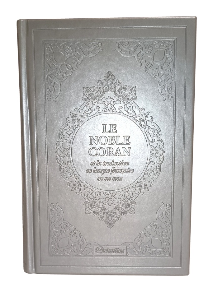 Le Noble Coran bilingue (arabe/français) avec couverture cartonnée de type cuir argenté (silver). Idéal pour offrir.