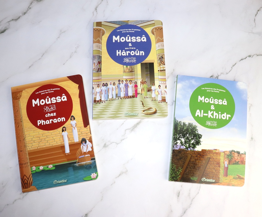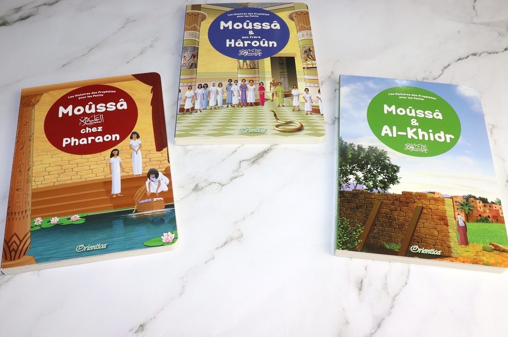 Pack 3 livres avec page cartonnée pour enfant musulman : Collection Moûssâ (Le prophète Moïse avec son frère Haroûn, Al-Khidr et Pharaon) - REF. 40348 (26.70 €) - En Promotion à 24.90 €