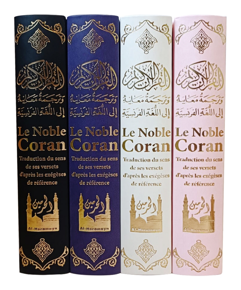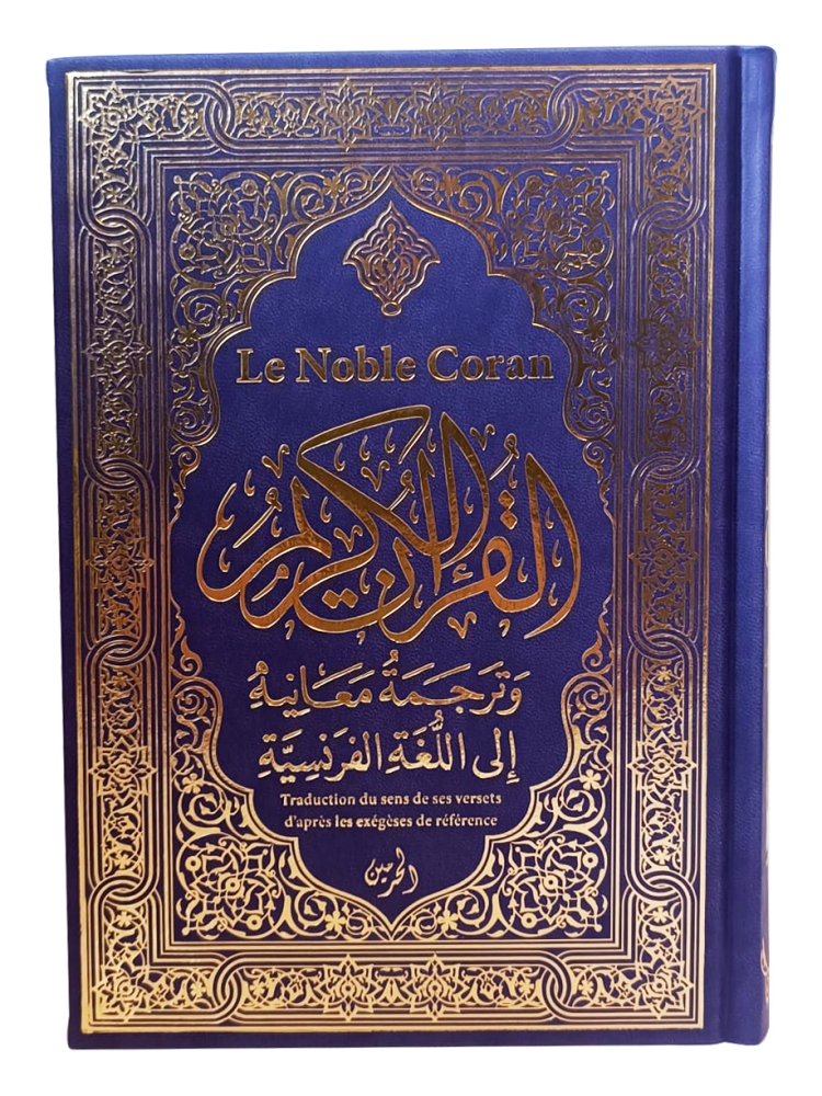 Couverture mauve foncé cuir de luxe avec dorure. Bilingue français/arabe. Le Noble Coran avec écriture othmani en lecture Hafs et sa traduction française en vis à vis sur la même page. Existe en d'autres couleurs de couverture...